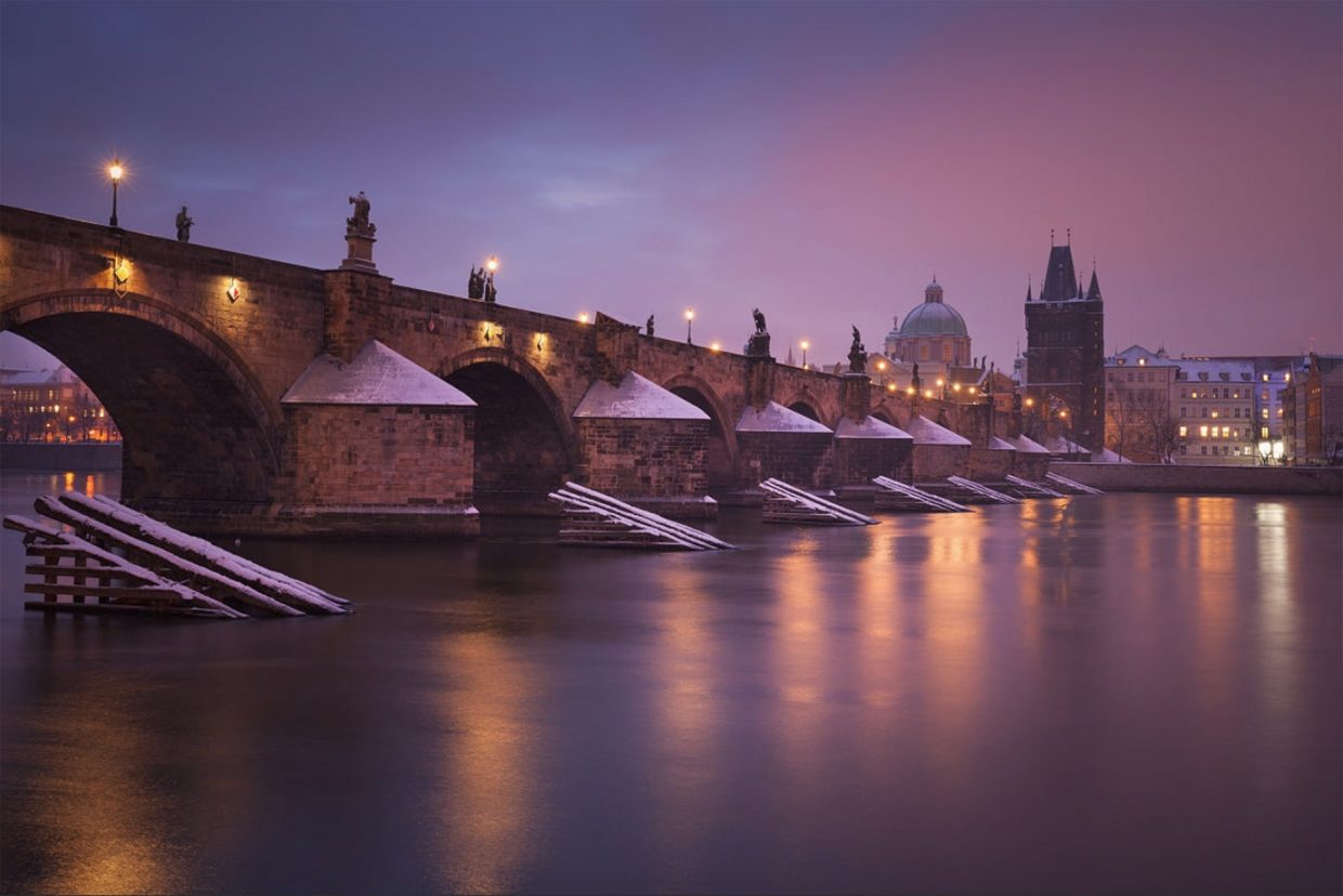Eine Stadt, die für ein schwarzweiße Fotos wie geschaffen ist. Der Januar erzeugt ein bedecktes, düsteres und nebeliges Wetter, ideal für surreale Langzeitbelichtungen. Wenn der Nebel über der Moldau hängt, und die Schneeflocken fallen, dann wird es stiller in der in der sonst so belebten Stadt. Es wird früher dunkel, Lichter flammen auf. Schatten verschwinden im nebligen Januarlicht. Das winterliche Prag, mit seiner einzigartigen faszinierenden Atmosphäre, voller alter Mystik, Romantik und dunkler Geheimnisse….